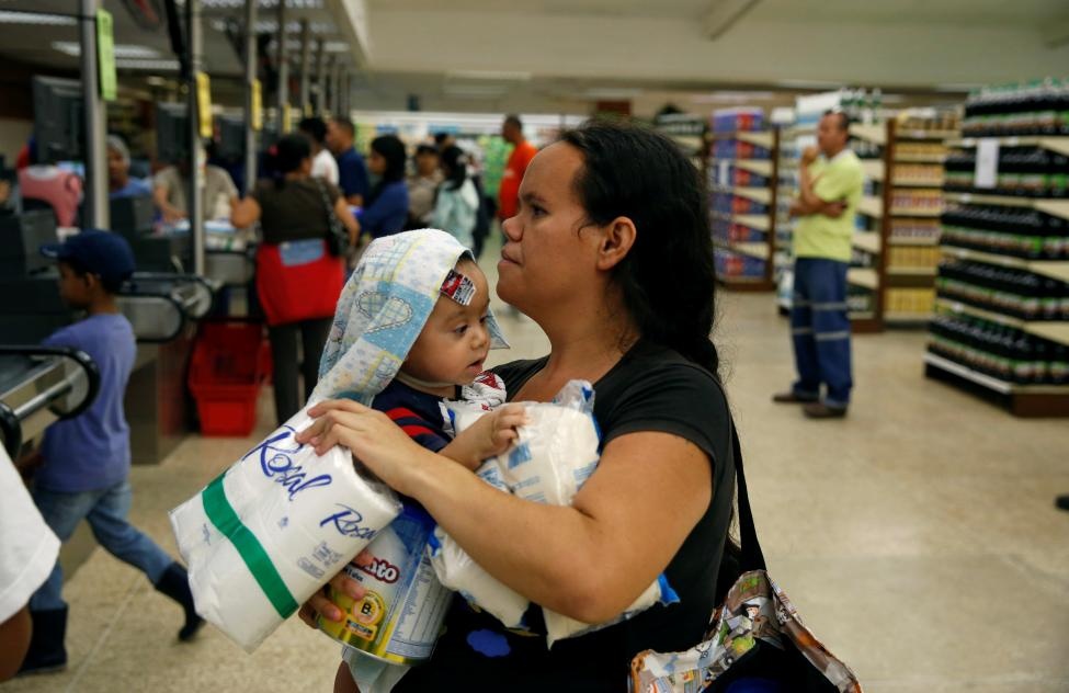 Mọi người tụ tập bên ngoài một siêu thị ở thủ đô Caracas để chờ mua lương thực và nhu yếu phẩm. Để mua được đồ, nhiều người đứng xếp hàng từ đêm hôm trước. Không ai biết siêu thị sẽ bán gì.